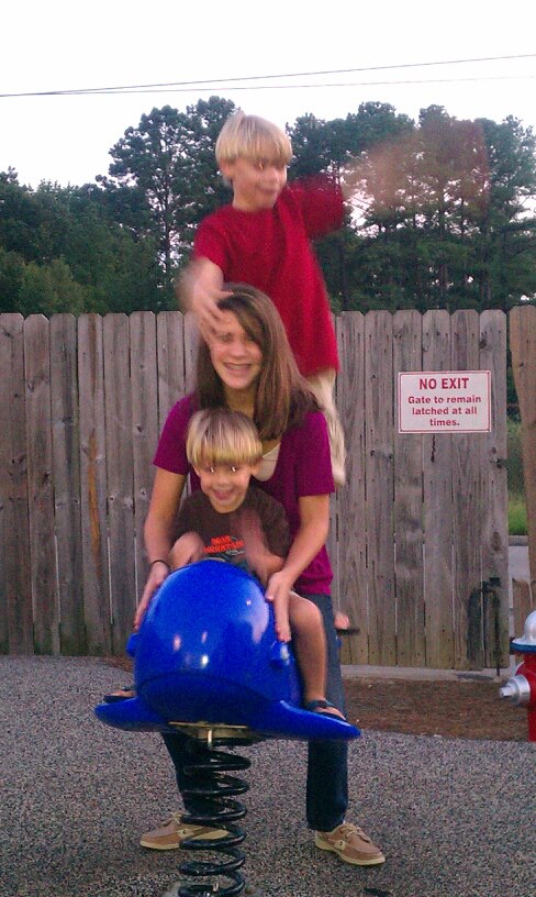 All I can say, is it's just a day in the life of a mom of three boys...doing whatever works.
